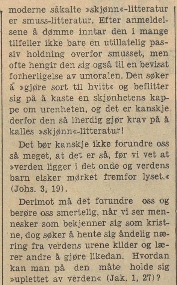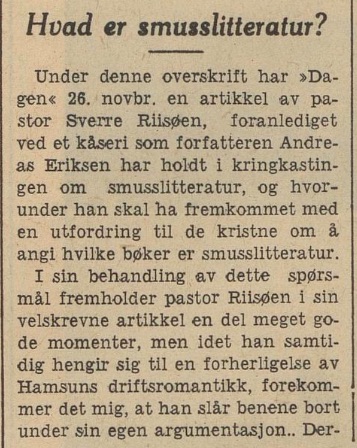 Daniel Nævdals artikkel i avisen Dagen – «Hvad er smusslitteratur ?»