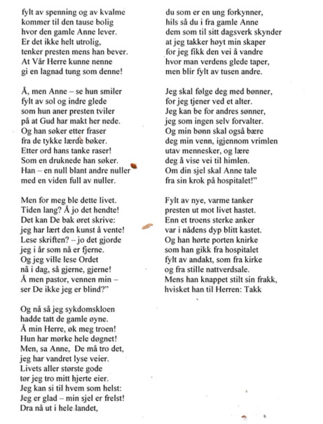 – til bergenskvinnen Jorunn Neby Vannes – og inntatt i Bergensposten (utgitt av Statsarkivet i Bergen) nr. 1 for februar 2017; dette spesielle diktet, eller gjerne livshistorien omhandlende de to kvinnene Kari Rasmusdatter Næsse fra Fjell på Sotra og Oline Kristensdatter fra Eivindvik i Gulen kommune nord for Bergen.