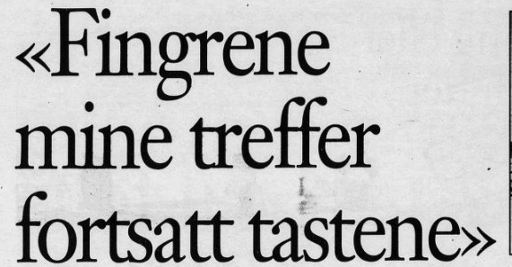 Får jeg skrevet litt, er dagen reddet. Det å formidle, feste tanker til papiret, er blitt min måte å overleve på. Det sysselsetter meg, gir meg lyst til å stå opp om morgenen. Noen ganger tar iveren overhånd, jeg glemmer at det sitter en eldre herre ved skrivemaskinen. Men bare for en stakket stund. Hode, armer og skuldre sier snart ifra. Kreftene holder til en liten epistel.