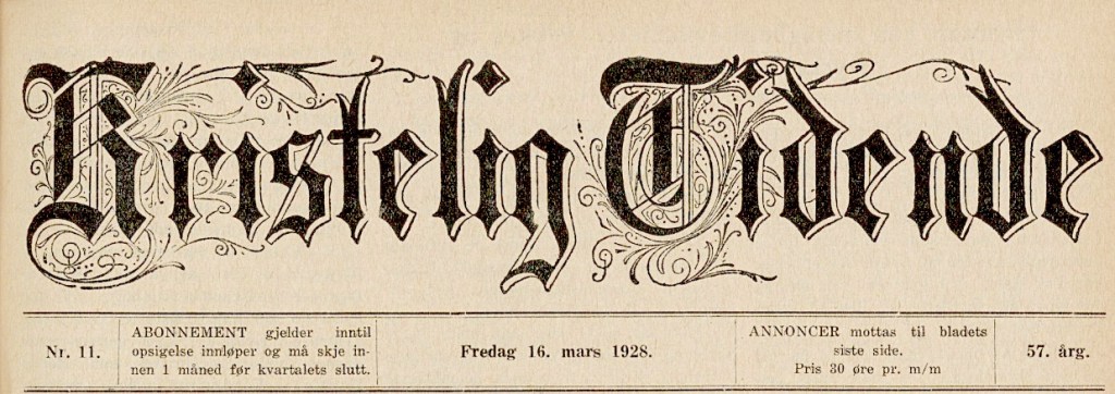 – i Metodistkirken i Norges fellesblad for 16. mars, etter at den aktede avisredaktør og støtte også for metodistmenigheten på Kongsberg var gått bort 19. februar 1928, kun 55 år gammel; det var metodistpastoren på dette tidspunkt, Lars M. Aarvold, som innsendte dette minneordet – les det her :