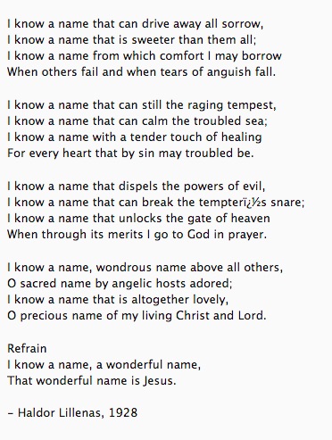 Jeg vet et navn som kan lindre sorg og smerte; jeg vet et navn hvor min sjel kan hvile få.