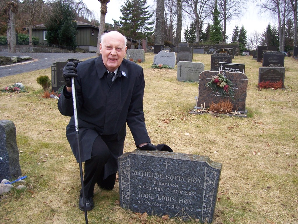 – på kirkegården ved kapellet på Kalstad i Kragerø, forbindelse med begravelsen til hans mors bror Einar (Holst Jensen) i 2006.