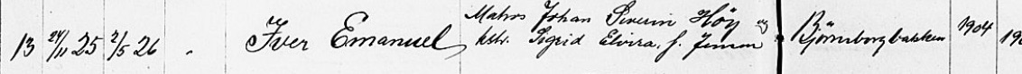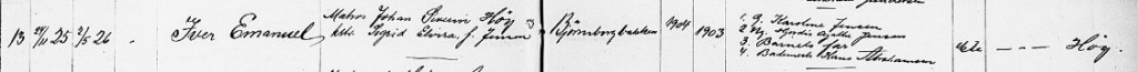 Iver Emanuel Høys fødsel innført i Klokkerboken for Kragerø i 1925.