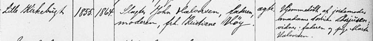 – og her leser vi at følgende var faddere ved dåpen : slakter John Halvorsen, far Niels Immanuel, mor Mathilde Sofie og i tillegg Kristians tante og Niels Immanuels eldre søster Kristiane, født i Bamble i 1851 og dermed 4 år eldre enn Niels Immanuel. Det som også er interessant er at ved folketellingen for 1891 er både Niels Immanuel og Kristiane registrert bosatt i gården «Halen» i Langesund, eiet av eldstebror Christian. Der bodde også deres mor Inger f. Møller.