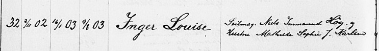 Inger Louise (Lovise) – eneste datter av Mathilde Sofie og Niels Immanuel Høy