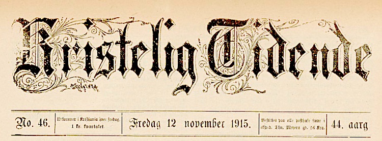 – og inntatt i «Kristelig Tidende» for 12. november 1915; dette besøk kom på et tidspunkt da Andreas Daastøl nylig – ved konferansen i Kristiansand S. det året – var blitt ansatt som forstander for menigheten der på landets sørspiss; ved samme konferanse var Bernhard S. blitt ny distriktsforstander for Bergens distrikt (det sør-vestre). Søndagen 28. oktober var han ankommet Lista, det vil si han var ankommet Farsund med båt sent på lørdagskvelden 27. og ble hentet av Andreas med hest og kom til overnattingsstedet på «Brækne» kl. halv ett om natten; les den interessante beretningen her :