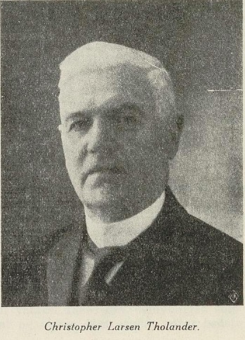 «Christopher Larsen Tholander er født den 9. juni 1861 paa gaarden Færden ved Hønefoss. Allerede fra barndommen hadde han alvorlige kald og dragelser fra Herren. Ofte bad han til Gud og ønsket fred for sin sjel. Efter konfirmationen kom han til «Ringerikes Blad»s trykkeri, hvor han var i 8 aar. Han fik i den tid verdslige kamerater og forsøkte sig med verdens glæder, men han fandt ingen tilfredsstillelse.