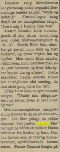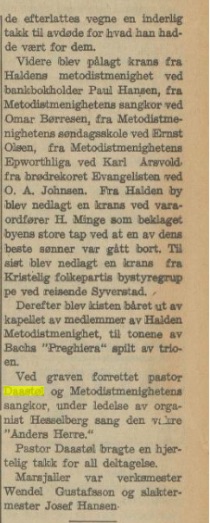 – og det er fantastisk å lese dette referatet fra Haldens Arbeiderblad onsdag 21. juni; her står nevnt at Andreas Daastøl «talte inntrengende til den store forsamling«. På dette tidspunkt hadde Daastøl vært prest i metodistmenigheten i Halden i nærmere ett år; les det interessante referatet her :
