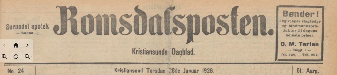 – stod å lese i Romsdalsposten torsdag 28. januar 1926 – over en stor del av første side; selve jubileumsfesten ble avholdt tirsdagen i uken før, nemlig 19. januar 1926. Festen og tilgrensende arrangementer under jubileet var blitt referert torsdag 21. januar, hvor det ble skrevet at Andreas Daastøls historiske skisse under festen var så interessant og av en slik karakter at den fortjente en egen artikkel. Torsdagen etter – 28. januar 1926 – kom den altså på trykk; spesielt for oss som familie er det å tenke på at da morfar Daastøl holdt på med forberedelsen av denne historisk oversikten, hjemme i presteboligen, var vår egen mor Mirjam inne i sin første levemåned, siden hun ble født 30. desember 1925, og må ha gitt lyd fra seg i hjemmet. Storebrødrene Elias og Norolf var omkring i huset, vel 4 og vel 2 år gamle; bare knapt et halvår senere, i juni 1926, skulle storebror Elias gå bort;