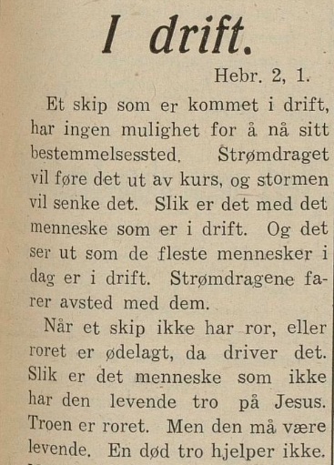 – og på avisens framside; dette var altså helt på tampen av vår morfars tjenestetid som metodistpastor på Hønefoss, stedet der familien, med vår kjære mor, knapt et år tidligere hadde opplevd dramatiske hendelser, som var livs-endrende. Les andakten her, hvor morfar tar utgangspunkt i skriftstedet Hebr. 2,1 :