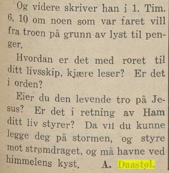 Andreas E. Daastøls artikkel : «I drift», inntatt i Flekkefjord-avisen «Agder» fredag 21. juni 1946