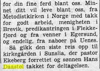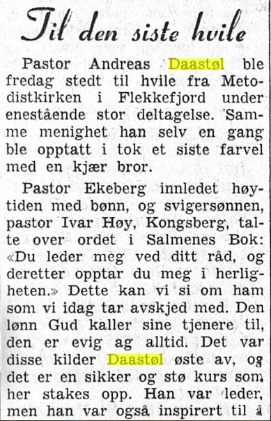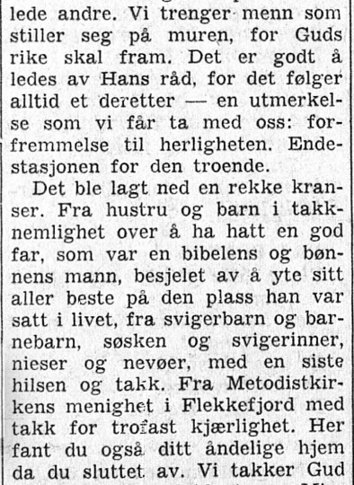– Kristiansand for tirsdag 13. november; med overskrift «Til den siste hvile». En vakker tekst, der flere av hans nærmeste er nevnt, også barnebarna :