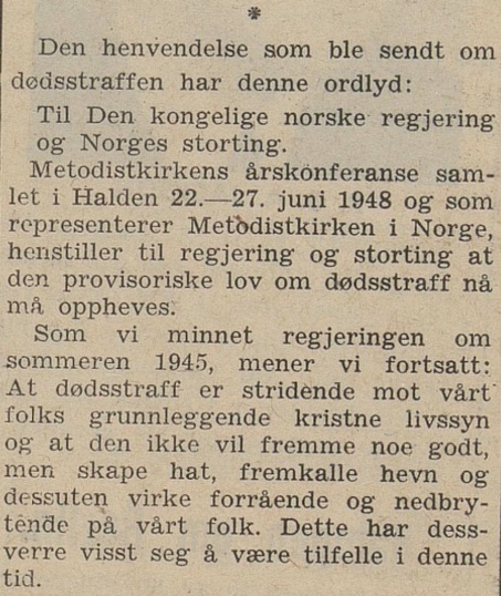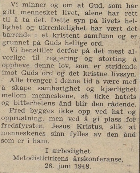 Freds-uttalelse fra Metodistkirkens årskonferanse i Halden 27. juni 1948