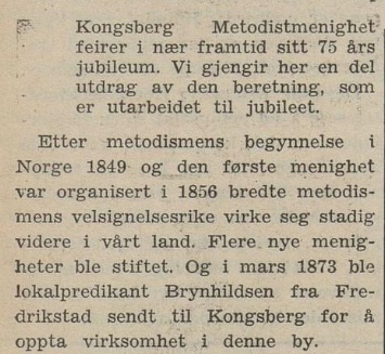 kongsberg metodistkirkes 75 års jubileum i 1948