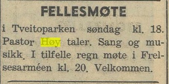 Intervju med vår far Iver Høy i Dalane Tidende – i forbindelse med Egersunds-menighetens 70-års jubileum i november 1959;