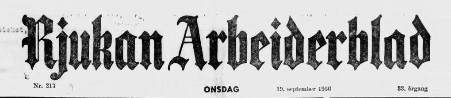 – noe som ganske sikkert skjedde ved den anledningen som er avertert i Rjukan Arbeiderblad nedenfor; nemlig torsdag 20. september 1956, og som vår far hadde veldig spesielle minner fra. Dette for ham spesielle er gjengitt nederst på siden her. Men først selve avis-dekningen :