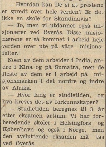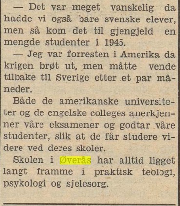 – det vi også må ha i tankene, er at det var våre egne besteforeldre, Kragerø-presteparet Ingeborg og Andreas Daastøl, som var vertskap for biskop Hagen den dagen han besøkte Kragerø. Kanskje kan vi undres over at vår far Iver Emanuel ikke er nevnt i intervjuet, på tross av at han var den eneste Øverås-eleven på akkurat dette tidspunkt fra Kragerø-menigheten. Vi kan imidlertid være helt sikre på at dette ble nevnt i samtalen mellom journalist og biskop; husk også på at allerede et par år før dette intervjuet var vår far blitt godt kjent med Daastøl-familien og hadde bistått sin pastor (og senere svigerfar) som evangelist og lokalpredikant, og at vår fars studier ved Øverås var samtale-emne mellom vår morfar og biskop Hagen.