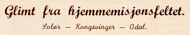Gud har vært god mot oss idet at arbeidet er blitt utvidet. Etter jul har vi foruten menighetens forstander to evangelister i fast virksomhet. Den ene særlig for Kongsvinger og Solør. For vår kirke og vår menighet har denne utvidelse meget å bety.