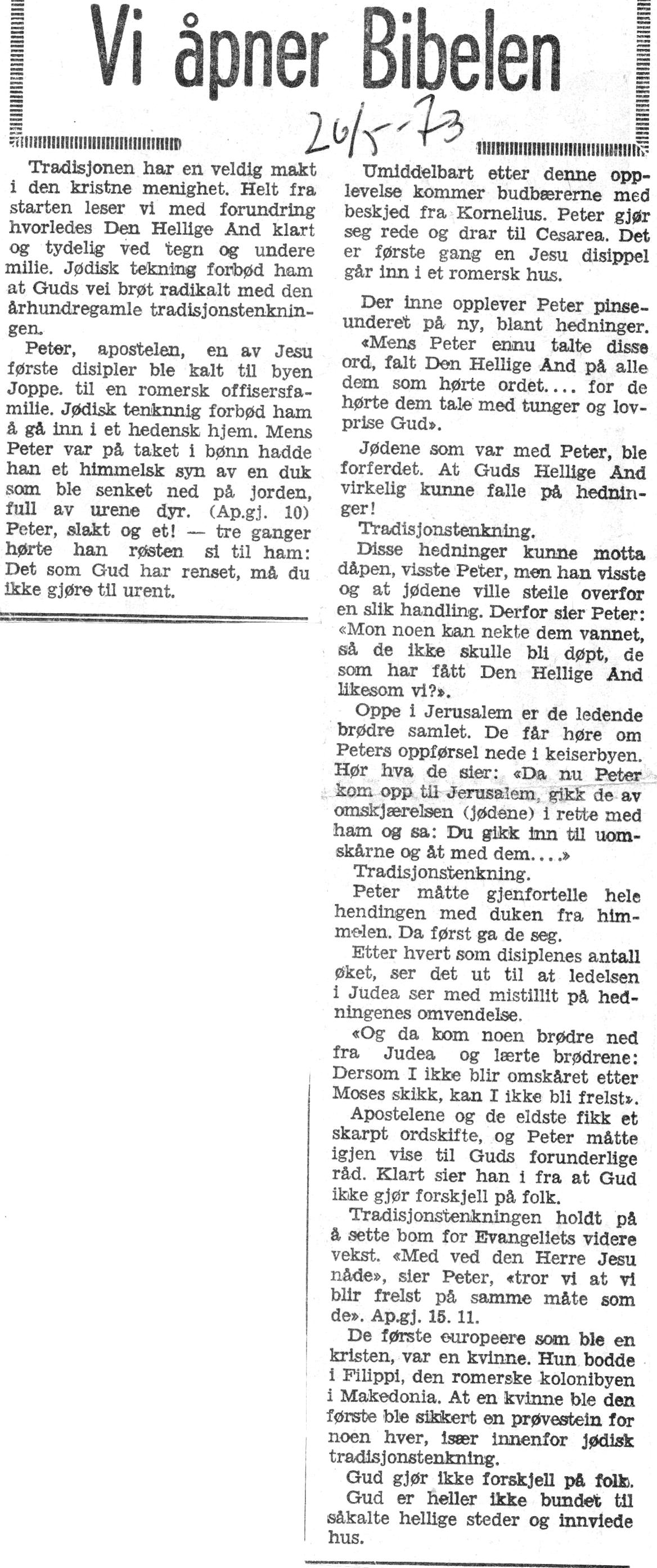 «To dager i mai» – innlegg i «Dagen» 25. mai 1976